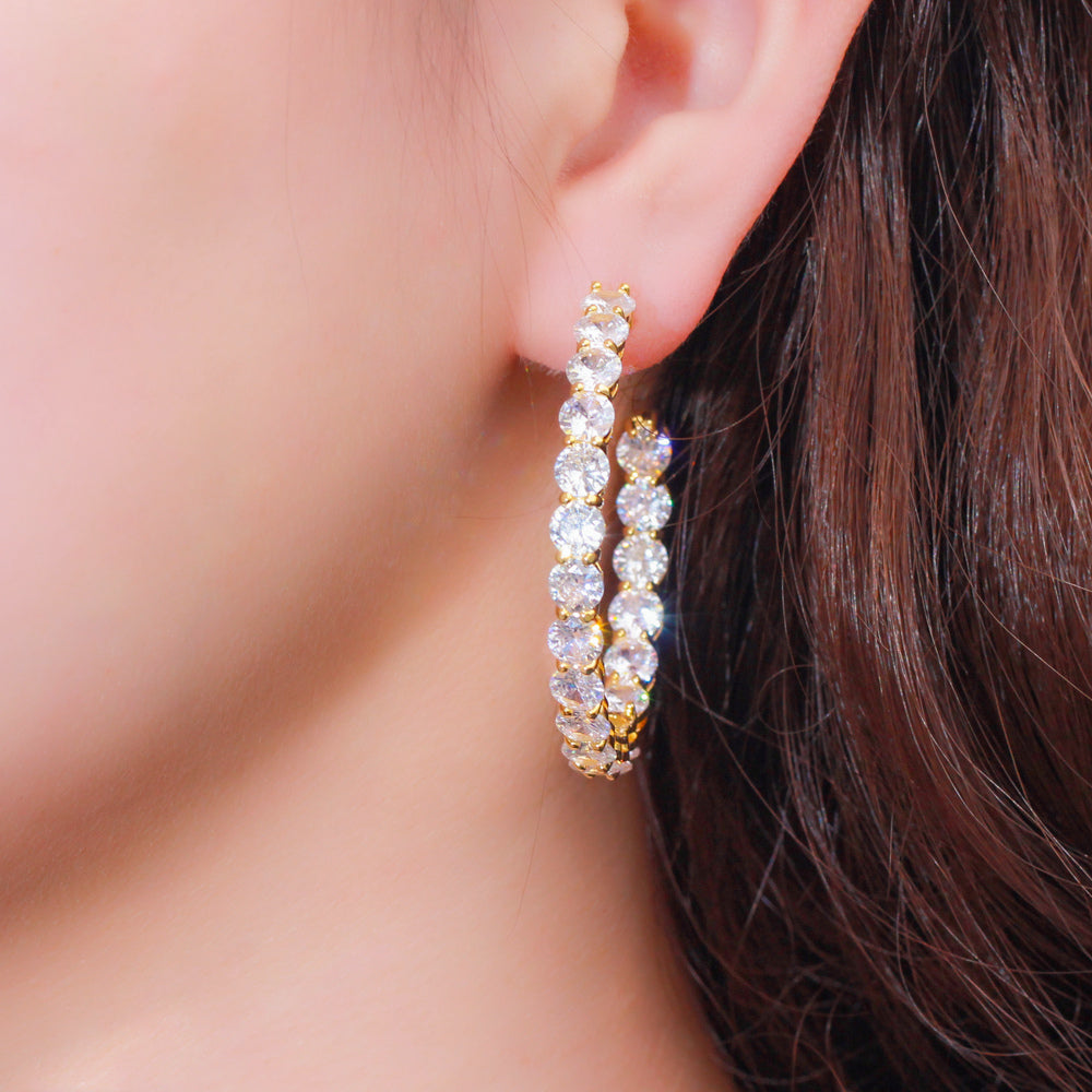 Bling Iced Out CZ Large Hoop Earrings – Round Cubic Zirconia Luxury Bridal & Party Jewelry for Women