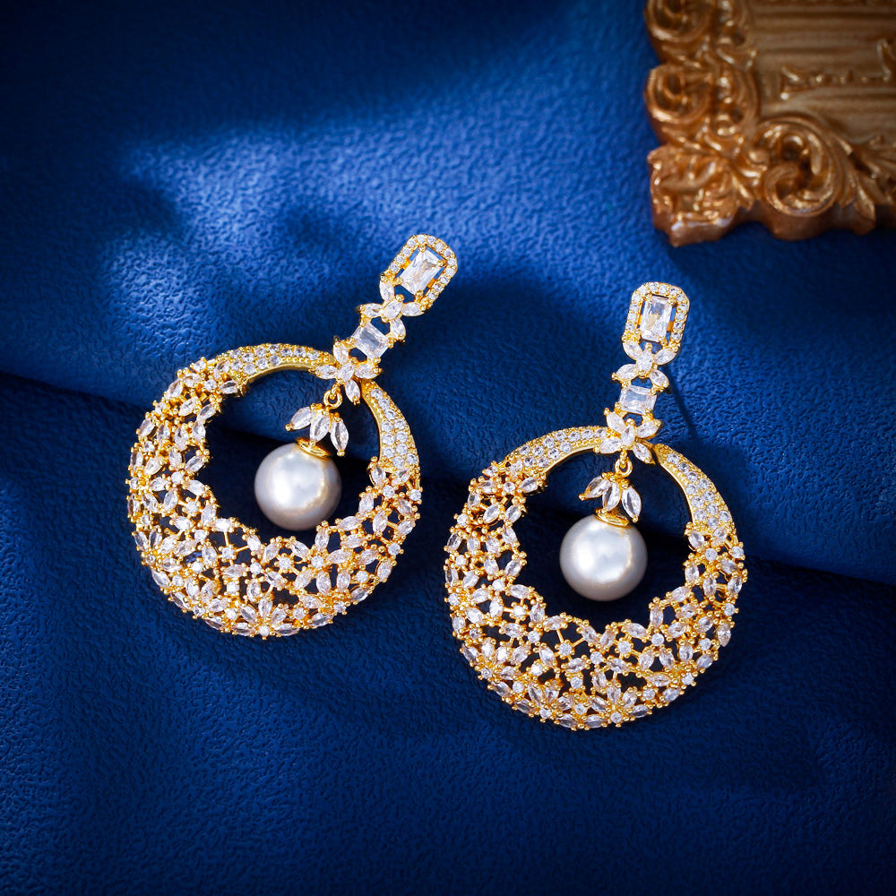 Grace your special occasion with these Luxury Hollow Flower Wedding Earrings, beautifully designed with silver plating, cubic zirconia sparkle, and a classic dangling pearl drop. The elegant hollow flower design adds a soft, romantic charm, while the long round silhouette creates a refined and graceful look.