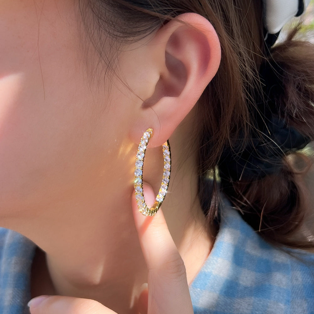 Big round hoop earrings with brilliant CZ detailing
